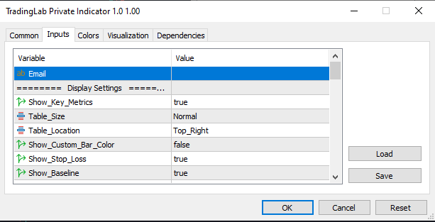 Go to the "Inputs" tab and under "email" double click the grey input box and type in the email that you signed with on tradinglab.ai.&#x20;